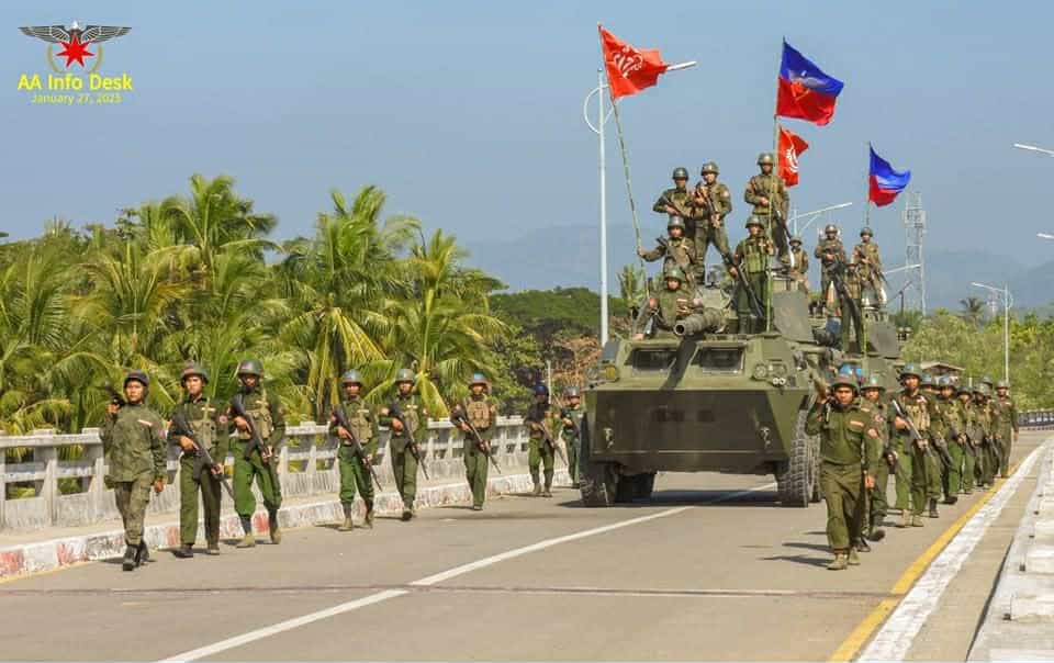 ရခိုင်ပြည်နယ်အစပ်က နေရာသုံးခုမှာ ဖြစ်ပွားနေတဲ့ တိုက်ပွဲတွေမှာ စစ်ကော်မရှင်တပ်ဟာ အထိအ ခိုက် အကျအဆုံးများစွာနဲ့ ရင်ဆိုင်နေရပြီး တပ်ပျက်ကာ ဆုတ်ခွာထွက်ပြေးနေတယ်လို့ ဆိုပါတယ်။