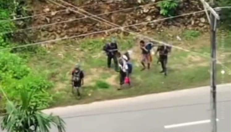 စစ်ကြောင်းထိုးလာတဲ့ စစ်ကော်မရှင်တပ်ဟာ ဥယျာဉ်ခြံတွေနဲ့လမ်းမှာတွေ့ရတဲ့ ကရင်ကြီး၊ သဘော့ဆိပ်၊ ကျောက်ဆင်နဲ့ ကမ်းပနီကျေးရွာတို့က စစ်ဘေးရှောင် အမျိုးသား၊ အမျိုးသမီး ၅၀ ကျော်ကို လူသားဒိုင်းအနေနဲ့ ဖမ်းဆီးပြီး သွားလာနေတာ ဖြစ်ပါတယ်။