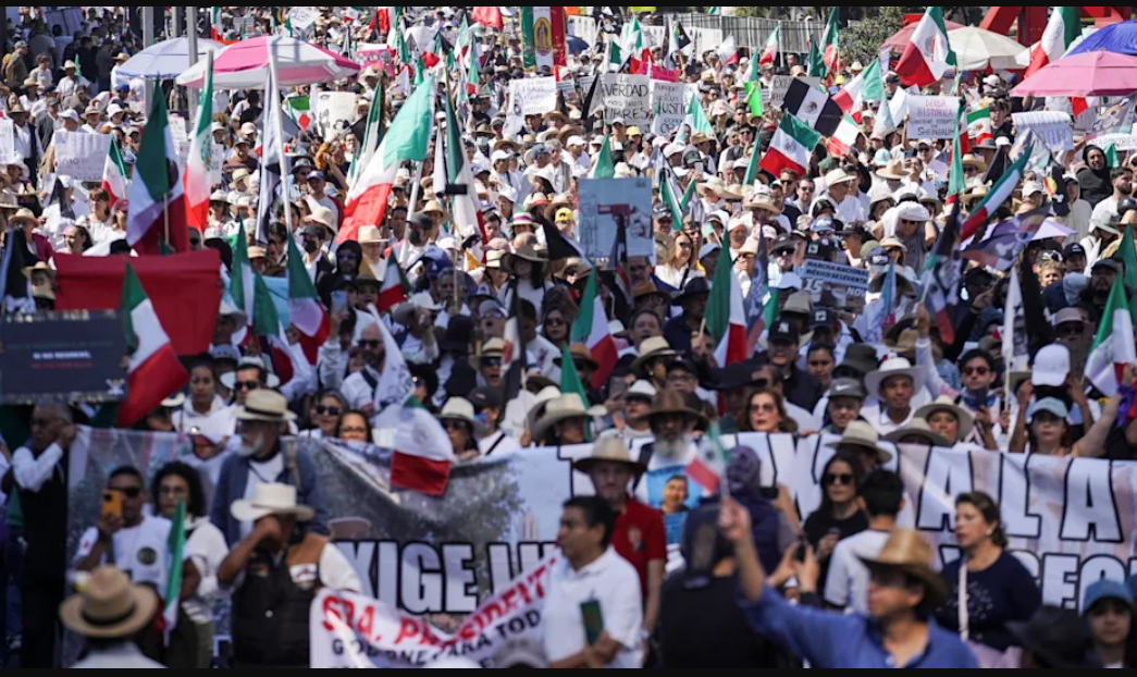 သမ္မတ ကလောက်ဒီယာ ရှိန်းဘွန်း အစိုးရနဲ့ အကြမ်းဖက် ရာဇဝတ်မှုတွေကို ဆန့်ကျင်တဲ့ အနေနဲ့ နိုဝင်ဘာ ၁၅ ရက်က မက္ကဆီကိုမြို့တော်မှာ လူထောင်ချီ ချီတက် ဆန္ဒပြခဲ့ကြတာပါ။