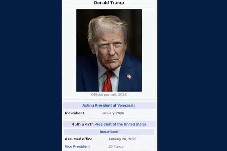 အမေရိကန်သမ္မတ ဒေါ်နယ် ထရန့်က သူ့ကိုယ်သူ ဗင်နီဇွဲလား ယာယီသမ္မတ အဖြစ် ကြေညာထားတဲ့ ဓာတ်ပုံ တစ်ပုံကို လူမှုမီဒီယာမှာ ဖော်ပြလိုက်ပါတယ်။