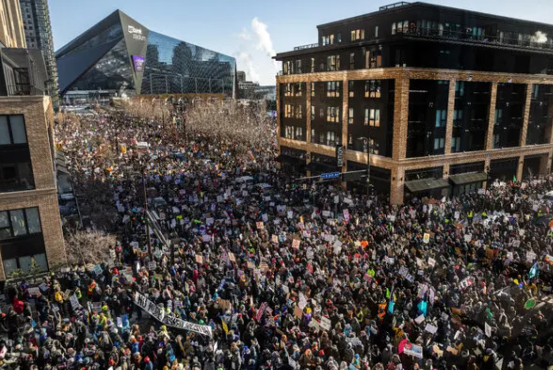 မင်နီဆိုတားပြည်နယ်မှာ ဆန္ဒပြသူတွေက ICE ထွက်သွားလို့ အော်ဟစ် တောင်းဆိုနေကြပါတယ်။