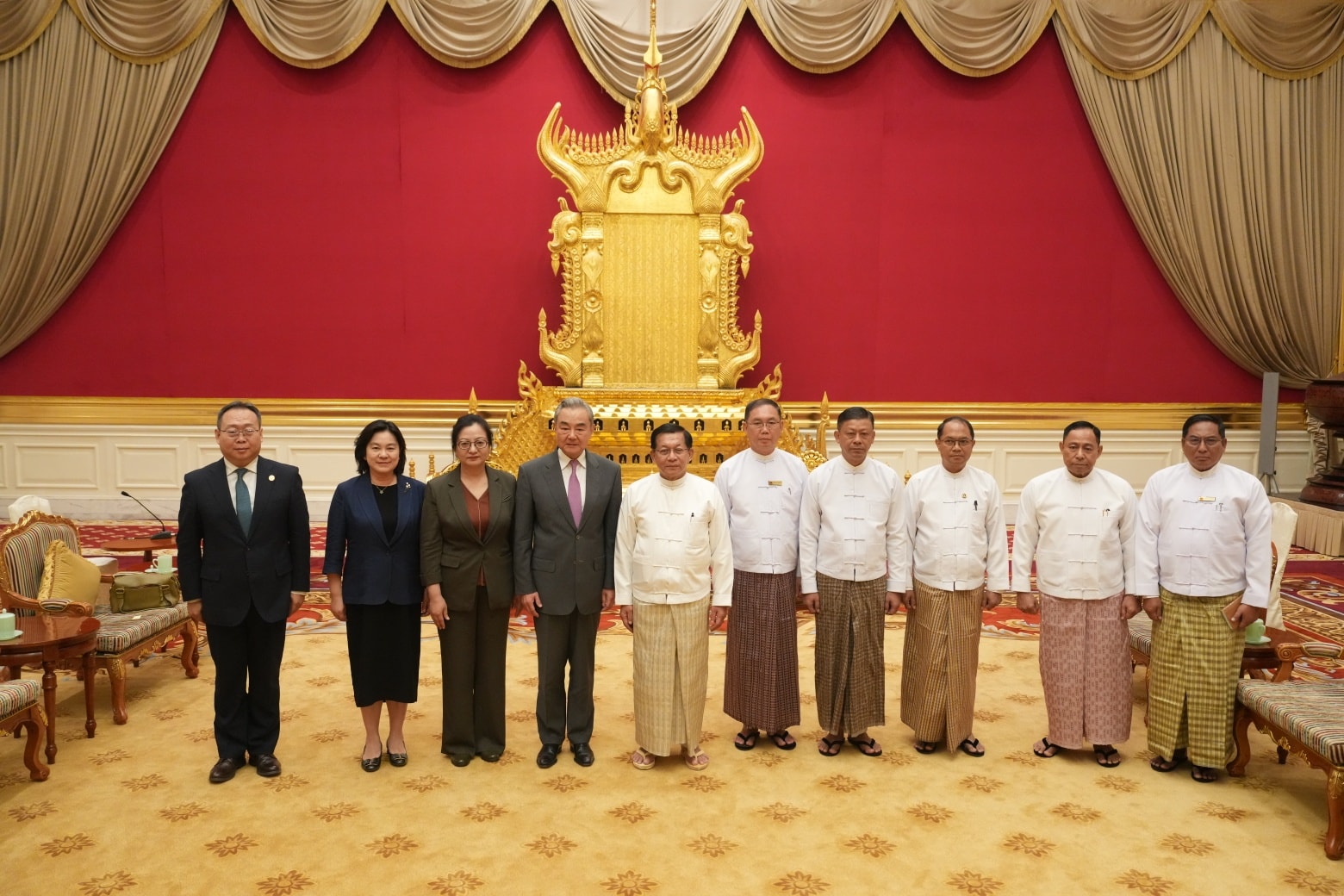တရုတ်ကွန်မြူနစ်ပါတီဗဟိုကော်မတီ၊ နိုင်ငံရေးရာဗျူရိုအဖွဲ့ဝင်နဲ့ နိုင်ငံခြားရေးဝန်ကြီး ဝမ်ယိ ဦးဆောင်တဲ့ ကိုယ်စားလှယ်အဖွဲ့က ဧပြီ ၂၅ ရက်နေ့မှာ မြန်မာနိုင်ငံကို လာရောက်ပြီး သမ္မတတာဝန်ယူထားတဲ့ ဦးမင်းအောင်လှိုင်နဲ့ တွေ့ဆုံခဲ့ပါတယ်။